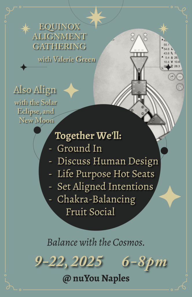 Guest Workshop: Read Your OWN Human Design Chart with Valerie Green on Monday, August 25th, 2025 @ nuYou Naples